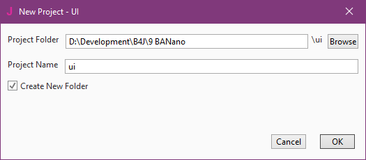 1. Create a UI project using B4J. An UI project allows us to open the browser to view the page automatically.